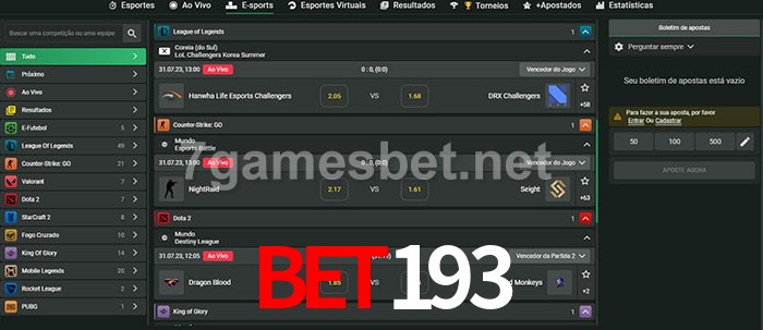 A aposta Bet193 oferece aos jogadores a experiência mais conveniente de apostas em eSports!